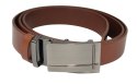 Pasek Męski Skórzany Arucce (PL) Skóra Licowa EXTRA 35 mm CIEMNY BRĄZOWY Gładki Klamra Bezniklowa Samozaciskowa SREBRNA 35