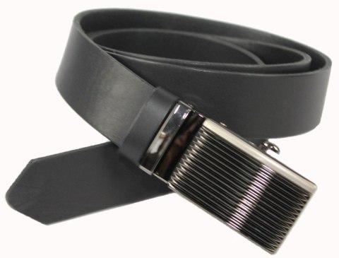 Pasek Męski Skórzany Arucce (PL) Skóra Licowa EXTRA 35 mm CZARNY Gładki Klamra Samozaciskowa SREBRNA 7