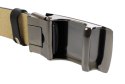 Posiada pełną klamrę, co dodaje paskowi elegancji.   Szerokość paska 35 [mm] jest kompatybilna z szerokością szlufek wszystkich rodzajów spodni wizytowych (w tym garniturowych). Pasek tego typu jest idealnym dodatkiem i uzupełnieniem do wyjściowego ubioru na takie okazje jak wesela, przyjęcia, spotkania biznesowe, pogrzeby, eleganckie przyjęcia itp. Ze wzglądu na wygodę i intuicyjność obsługi pasek ten można zakładać do codziennego ubioru - łącznie ze spodniami jeansowymi oraz do stylu semi-casual. Posiada pełną klamrę, co dodaje paskowi elegancji. Klamra jest automatyczna - taki rodzaj klamry oprócz niewątpliwych walorów estetycznych jest bardzo praktyczna i wygodna w obsłudze. Na skórzanej części paska od wewnętrznej strony znajduje się wąski pasek z zapadkami, który współgra z zastosowaną klamrą. W przypadku kiedy zamówiony pasek okaże się za długi - wystarczy odpiąć klamrę od paska (jest zapinana na klips) po czym obciąć nadmiar skóry ostrym nożem/nożyczkami. Dodatkową zaletą jest również możliwość płynnej regulacji długości. Odpinanie paska odbywa się za pomocą naciśnięcie odpowiedniego przycisku przy klamerce.